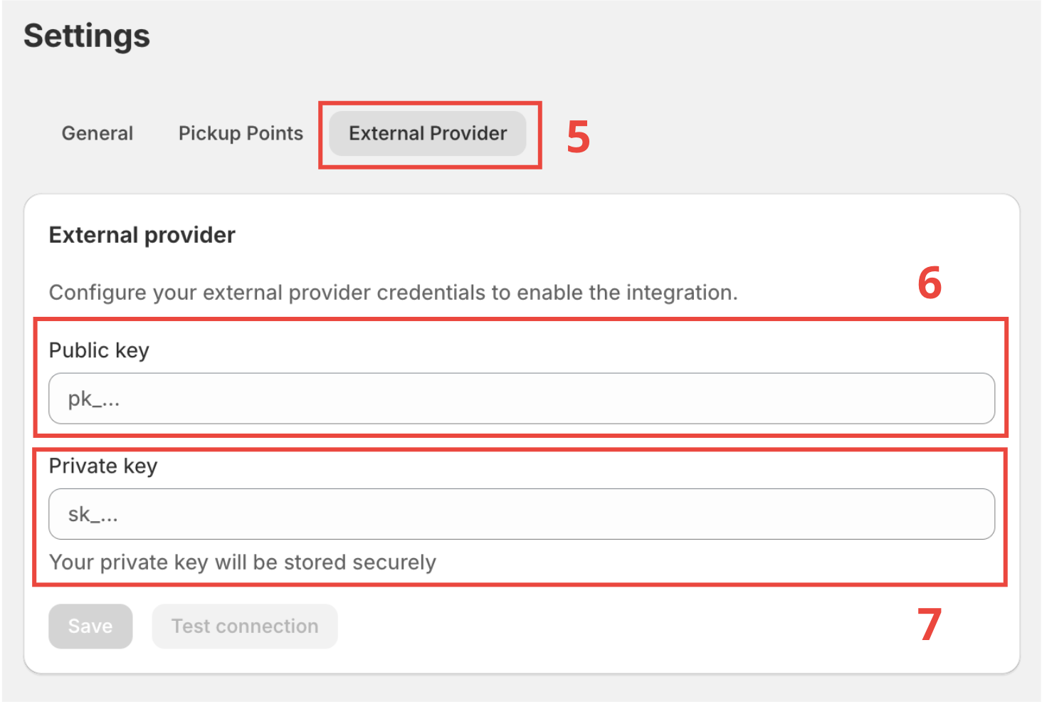 The External Provider tab is only visible when your app is running in Pickup Only mode. If you don't see the tab, go to Settings > General and switch the app mode.